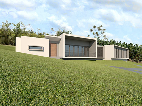 CASA CORDILLERA is a new 2,500sf single-family residence in Orocovis, PR. The building is located on the highest point of the hill facing southeast, taking advantage of the view, natural ventilation and lighting.