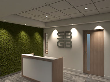 SBGB LAW office renovation project consists of a new reception area and multi-media/conference room. The design approach was to create a terrace-like reception where employees could vent and step out of the busy office when on break. The media/conference room was designed to be a fun/creative space that contrasts with the rest of the more sober areas in the office.
